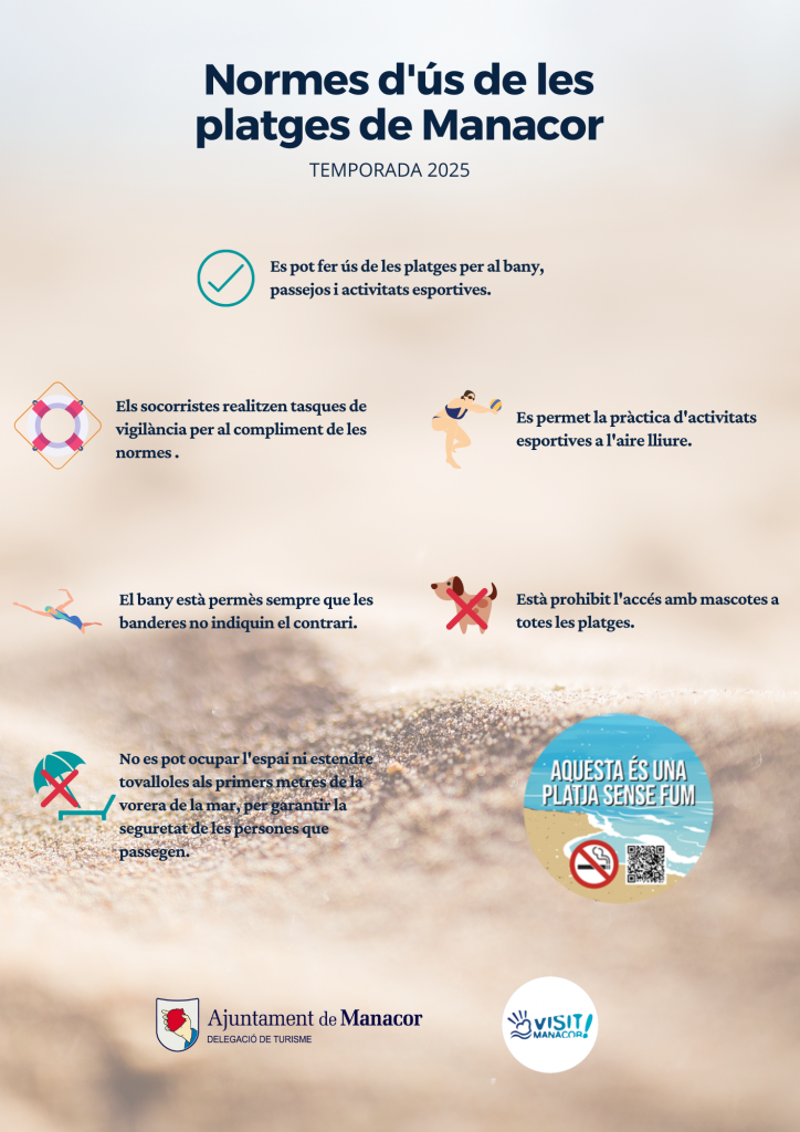 Amb la finalitat de facilitar l’estada a les nostres platges i el bany a persones amb mobilitat reduïda, l’Ajuntament de Manacor facilita aquest llistat d’infraestructures accessibles a les platges del terme municipal de Manacor, i d’aquesta manera dona compliment als requisits establerts a la Norma ISO 13.009 de Gestió de platges.